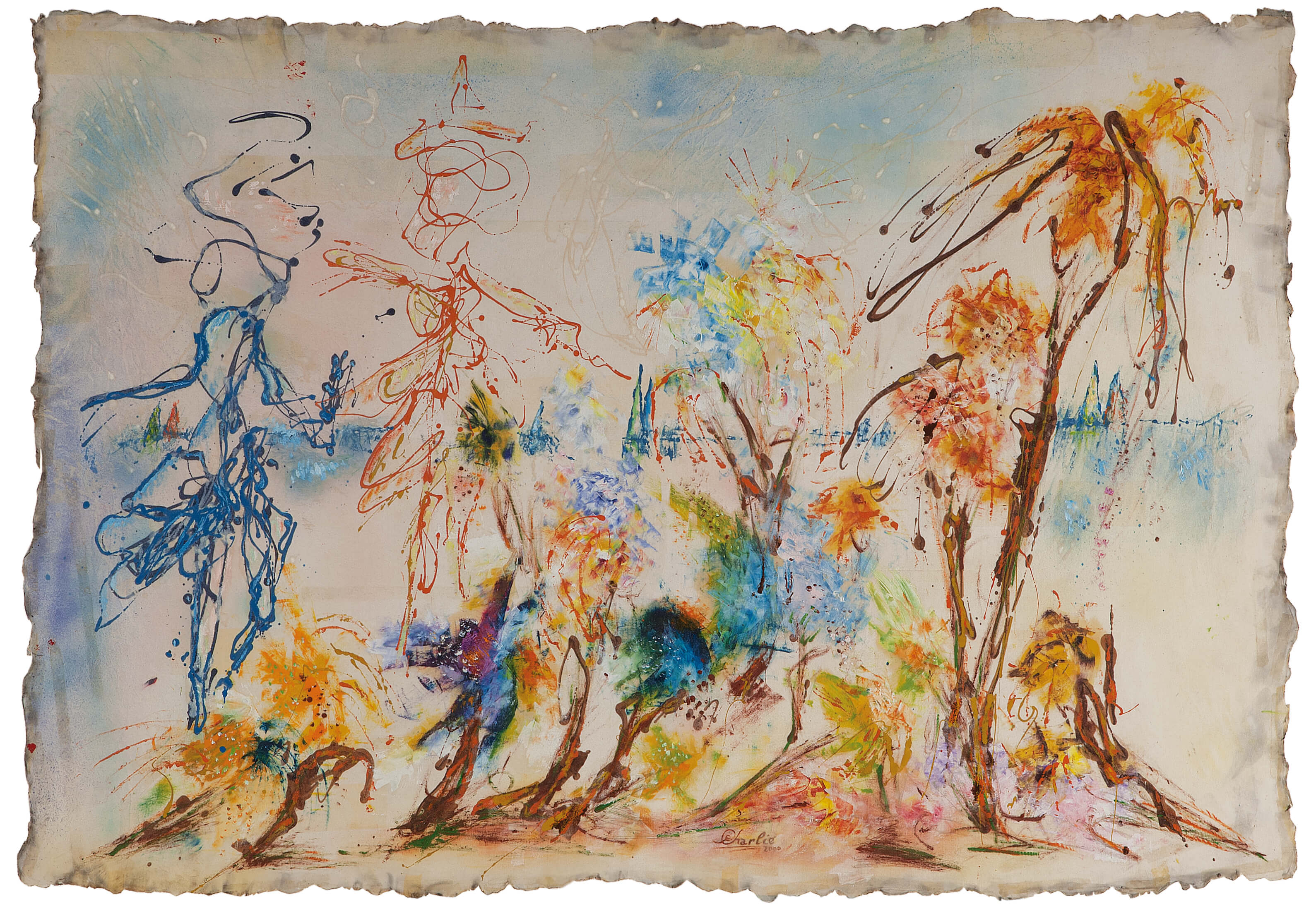 The desert island, an usual shipwreck setting, here becomes the landing place of two lovers who- after having been looking one for the other for a long time-once they finally meet , feel as the rest of the world disappeared for a moment. The picture seizes the fleeting moment, full of expectations, preceding the soulsÂ’ meeting, while Nature participates of this union embodying the desire for trascendence implied in the true love feeling.