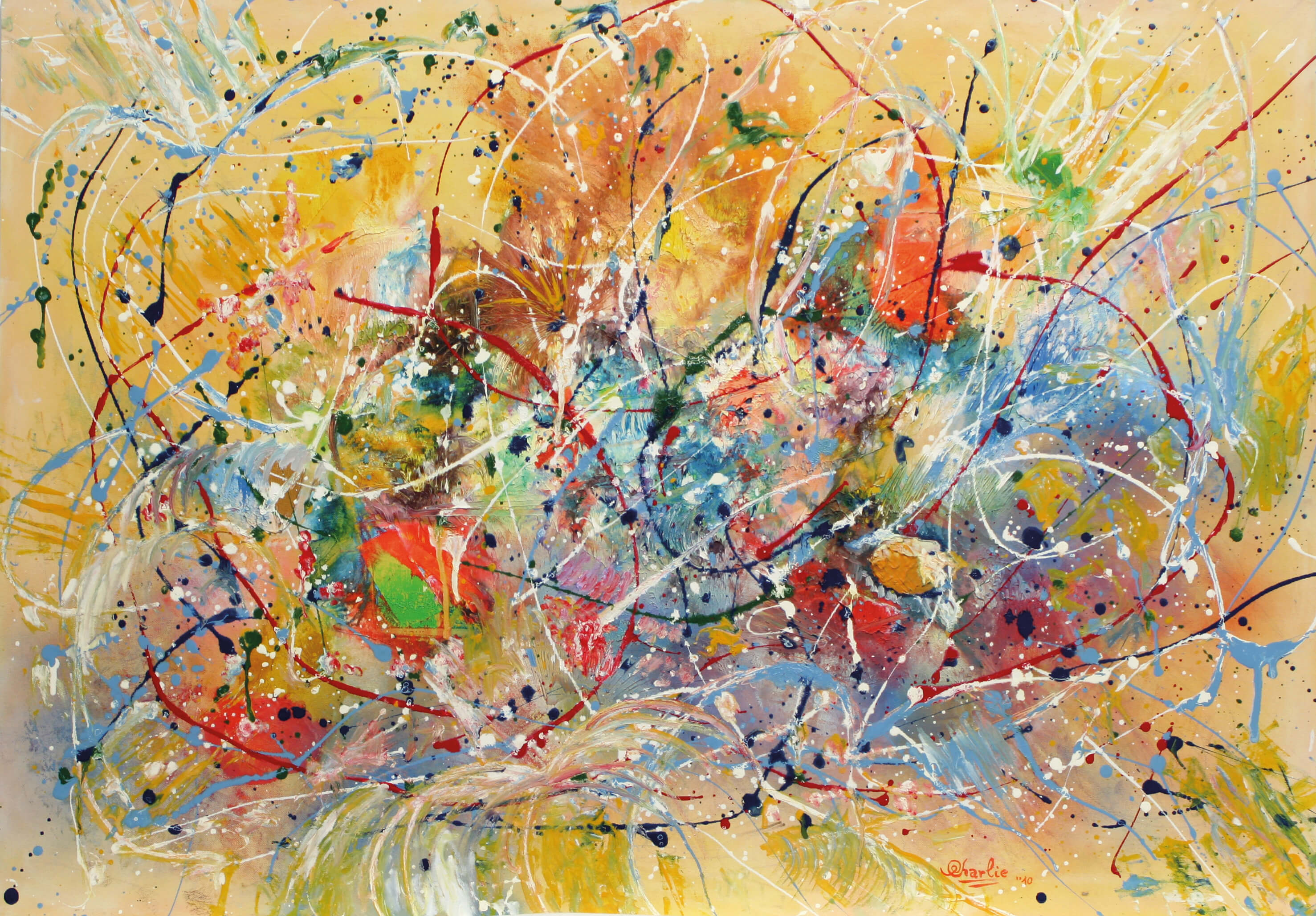Overpassing the anecdotic narration, the aesthetic research reaches an abstract result, characterized by the free gestural expressiveness and by the unforeseeable effect of dripping. Once the representation is left, the art work lets its message to the contemplative perception of the subject who, one thing at a time, gets in touch with it, preferring the peremtory meaningful interpretation to the unfinished and in progress one.