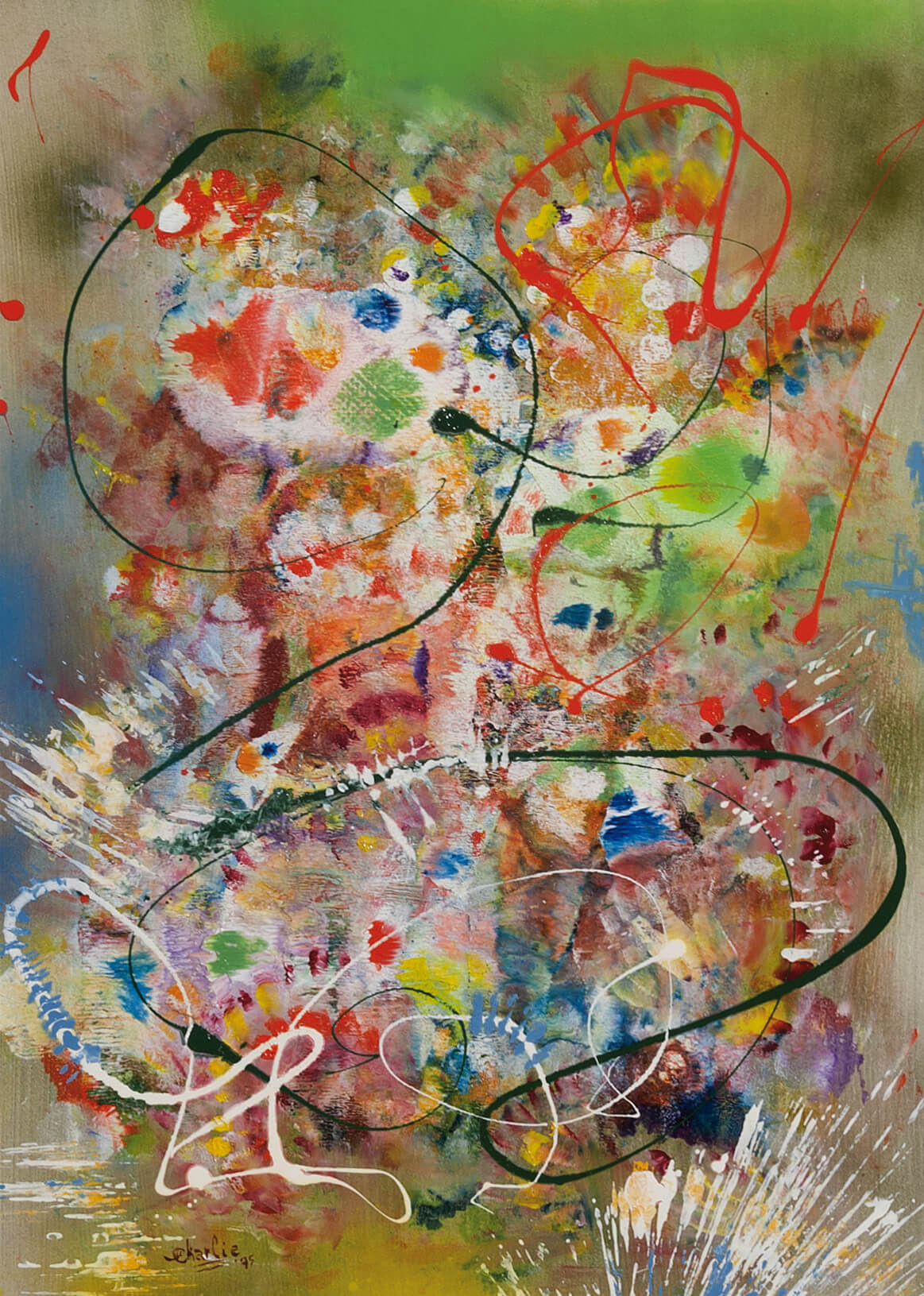 The natural element is tranformed into a picture able of seizing the intimate beauty of the universe and give it back as a gift. The composition and the shaded of colours in a chromatic range, from the cold tones of purple and blue to the vividness of red, conveys the polymorphysm of Nature, the exultation of life that emerges from the primordial liquid to become fertile humus in a soundless never - ending swarming.